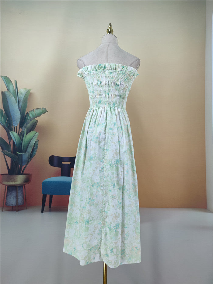 Ontdek de Boho-stijl met ons Franse off-shoulder wikkeljurk. Deze nauwsluitende jurk met bloemenprints is perfect voor zomerse gelegenheden. De hoge taille en de A-lijn rok bieden een flatterende silhouet. Verkrijgbaar in de kleuren Lichtgeel, Groene Print en Witte Print. Perfect voor veelzijdige combinaties. Geniet van modern comfort en stijlvolle elegantie.