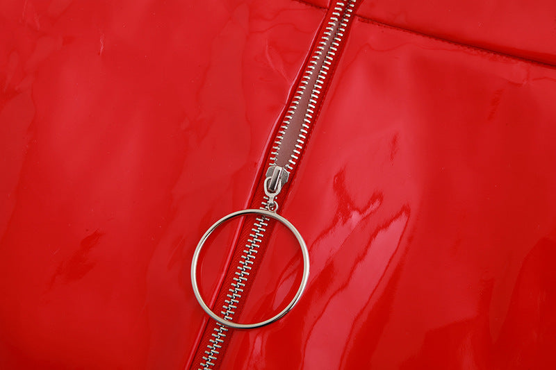 Jennifer – Kurzrock mit Ringreißverschluss aus hochwertigem glänzendem veganem Leder
